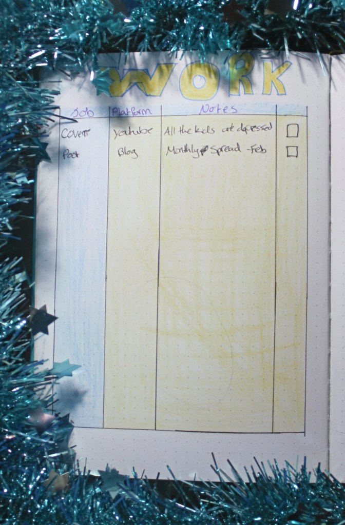 I couldn’t find much inspiration for this page. I want a monthly page to help me keep track or work ideas or plans, so I designed this simple page! With this I can note down any cover ideas or blog post ideas and reminders.
