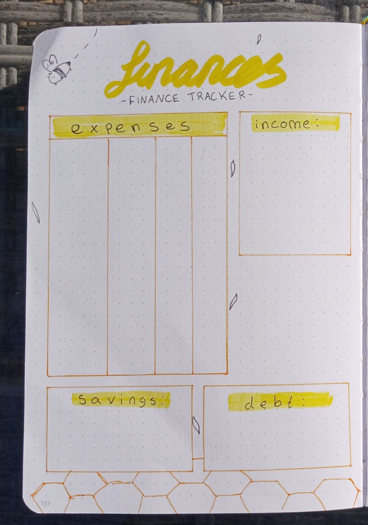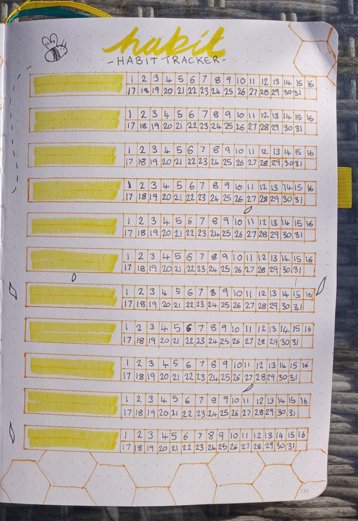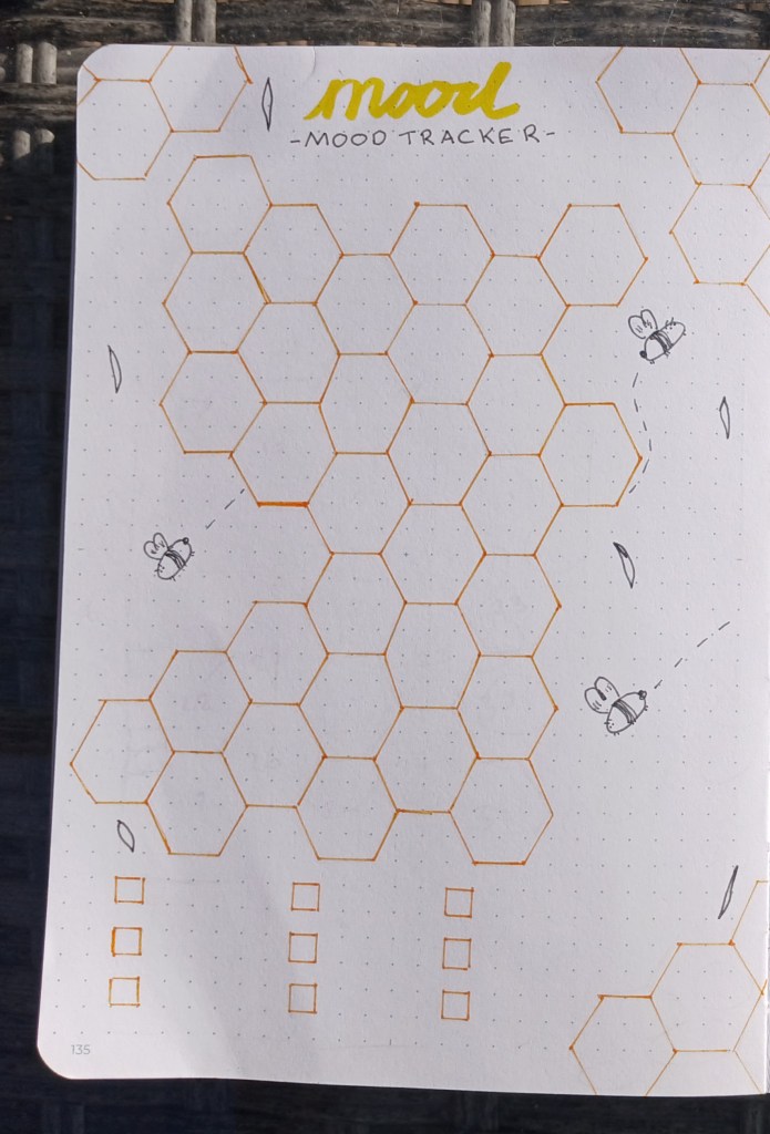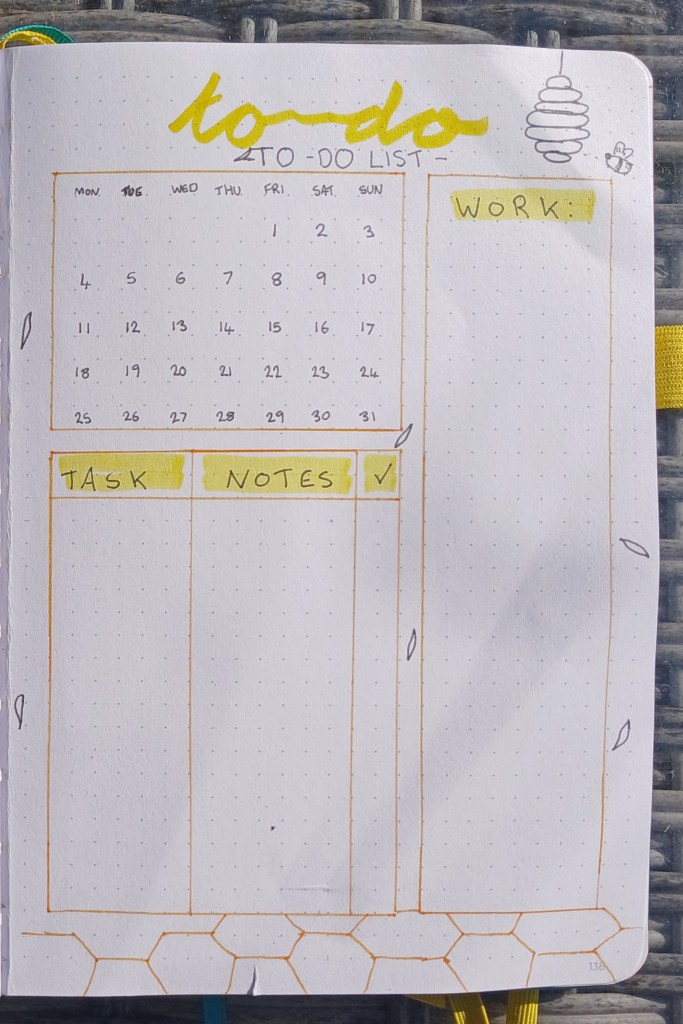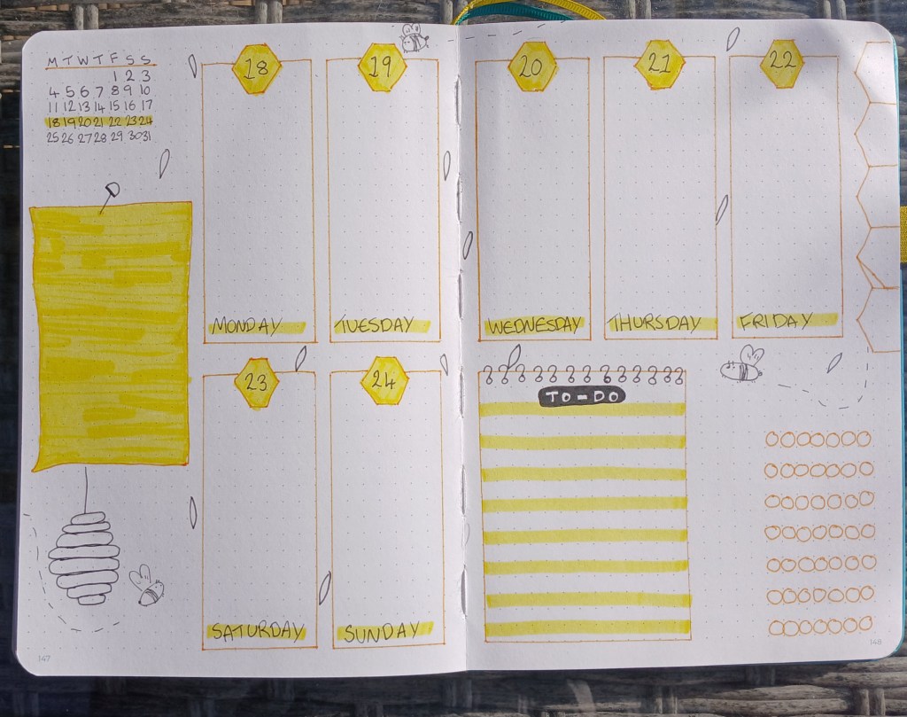 Whilst drawing out my weekly spread I found myself struggling to chose between designs for my corner space, so I alternated instead! I doodled a little beehive on one and the usual honeycomb on the other. Admittedly my honeycombs all around could have been a lot better, but I was in a rush to get it all done and still working my way up to more elaborate border designs