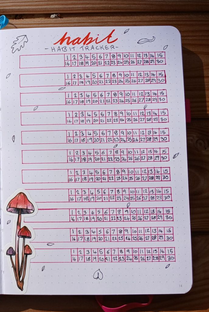 I’m really hoping that mushroom sticker isn’t going to get in the way of my habits… I haven’t filled this one in yet because I’m planning on using individual colours for each habit – once again using pencils.